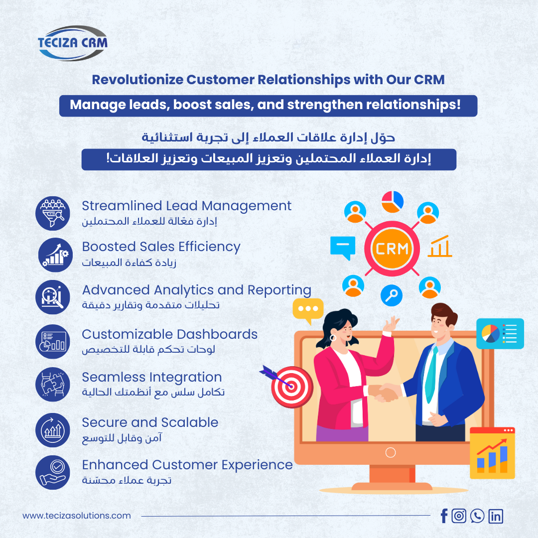 Teciza CRM is a powerful customer relationship management solution designed to help businesses enhance customer interactions and drive growth. It streamlines sales, marketing, and customer service processes to improve engagement and satisfaction.