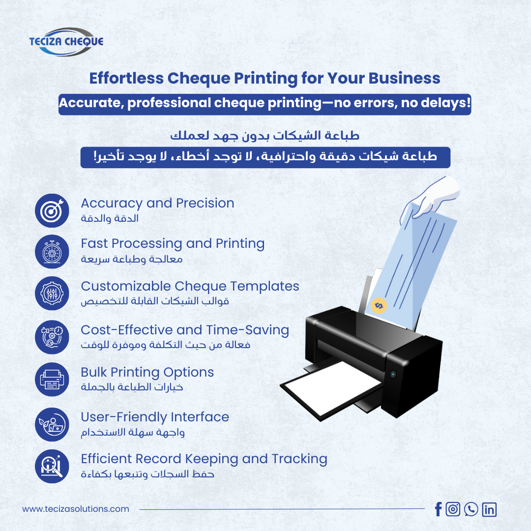 Teciza Cheque is a streamlined solution designed to simplify cheque management for businesses. It ensures secure, efficient, and accurate processing of cheques, reducing manual effort and errors.
