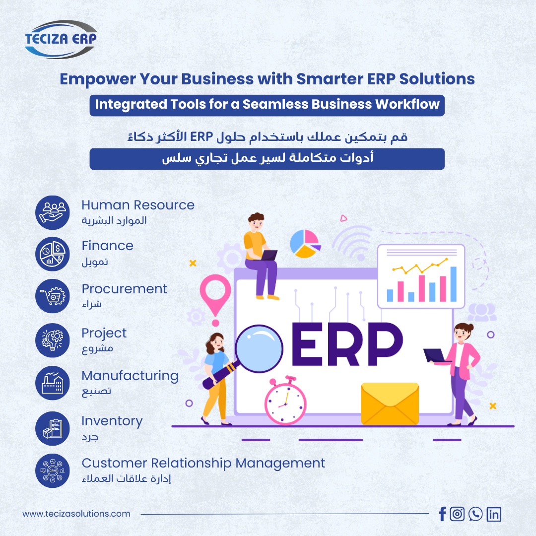Teciza ERP is a flexible and scalable enterprise resource planning solution designed to streamline business operations.